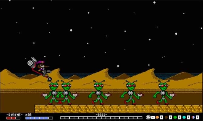 Plant seeds to grow guns! GunWorld is a love letter to 8-bit action games, it's an homage to everything great about classic game design and action heroes of the 1980s! An emphasis on high challenge and non-linear progression means GunWorld is not for the faint of heart. Players will be challenged to complete a series of levels in any order they choose, unlocking new weaponry as they do. With each new piece of equipment additional options present themselves, encouraging experimentation and repeated level runs.