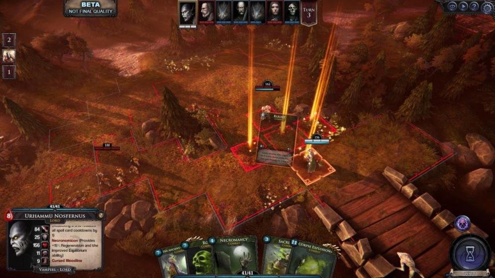 For as long as historians can remember, the ancient Dracul bloodline has ruled over the mysterious lands of Warmont – Realm of the Bloodthrone. Inside the secluded borders of this land, an unholy court of vampires feast on the blood of their human subjects. And, as long as they give it willingly, a vicious peace between mortal and immortal is kept alive under the watchful eye of the vampiric rulers - Vlad and Cecilia Dracul, forever bound by eternal love. To the east, a cold wind blows over the desolate planes of Mourterra – The Land of the Dead. No humans live on this barren and cursed soil, and yet the land is far from deserted. Horrifying remnants of the ancient and corrupt Nosfernus bloodline stalk here in silence, patiently waiting for their chance to once again plague the lands of the living. Meanwhile, in Esain - The Frozen North, another bloodline of vampires resides in solitude and isolation from the world. For the mystical clan of the Moroia, magic is blood, and blood is magic... and it runs thick in their cold, blue veins. No being – living or dead – dares interrupt their dark rituals and bloody soirées. Tonight, the smell of blood is strong on the wind, and a red moon lights up the dark sky. A new vampire war is imminent, and none will be spared from the coming horrors. Immortal Realms: Vampire Wars is an engaging strategy game set in a dark vampire world in turmoil, that combines empire management and turn-based combat with unique card-game elements. Descend into a mythical world filled with horrors and legends – and hurl yourself into a compelling gothic epos paired with a challenging game experience. FEATURES: The Truth Unfolds: Discover the secrets of Nemire, and experience an enthralling story spanning across 12 meticulously crafted missions and four unique environments, from the perspective of four mighty vampire lords, each with their own goals and agendas. Discover the Bloodlines: Command one of three unique vampire clans with distinctive units, powers, gameplay mechanics and characters. Play as the bloodthirsty Dracul, the ancient Nosfernus or the mystical Moroia! Vampiric powers: Original card game elements enhance the gameplay and provide a refreshing take on the genre. Each clan and vampire lord has access to their own set of cards, which can be synergized into powerful combinations. Strategy & Tactics: Command your armies, recruit new units and unlock crucial technologies in the strategic Kingdom mode, and then put your tactical skills to the test in the action-packed Combat mode. Varied Content: Choose from three different gameplay modes, such as the story-driven Campaign, the open-world Sandbox, and the hard-fought Skirmish mode.